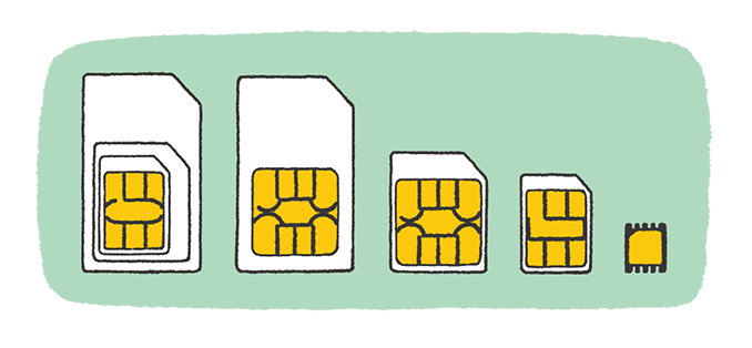 SIMカードは、指先程度のサイズの小さなカードです。スマートフォンやモバイルルータだけでなく、通話がメインの「フィーチャーフォン」にも取り付けられています。
