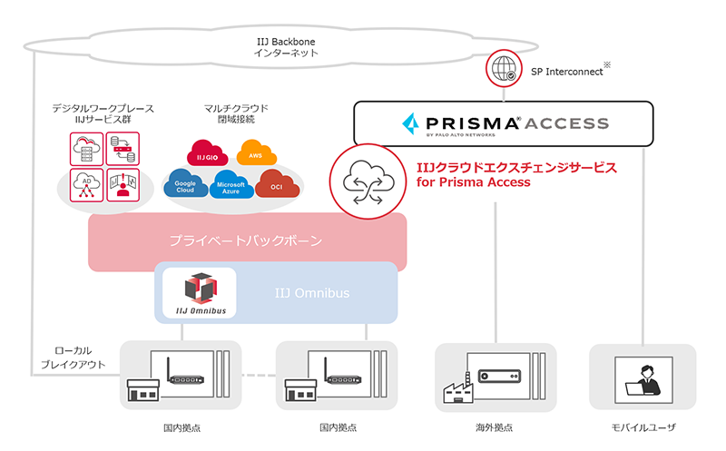 • (※)SP Interconnect はPalo Alto Networksがネットワークサービスプロバイダ向けに提供するパートナープログラムで、Prisma Accessとサービスプロバイダ側のサービス基盤の相互接続を実現します。IIJグループからPrisma Accessを購入し利用されるお客様はIIJバックボーンからのインターネット接続が可能となります。