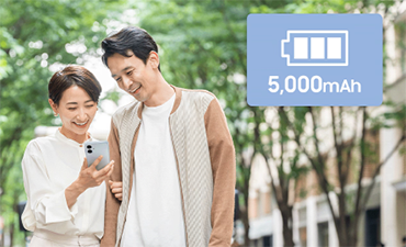 5,000mAhの大容量バッテリーで、動画視聴やゲーム、SNS、通話などをスマホの使用時間を気にすることなく思う存分楽しめる(※4)。外出先でも充電切れの心配がなく、あんしんして長時間の利用が可能。